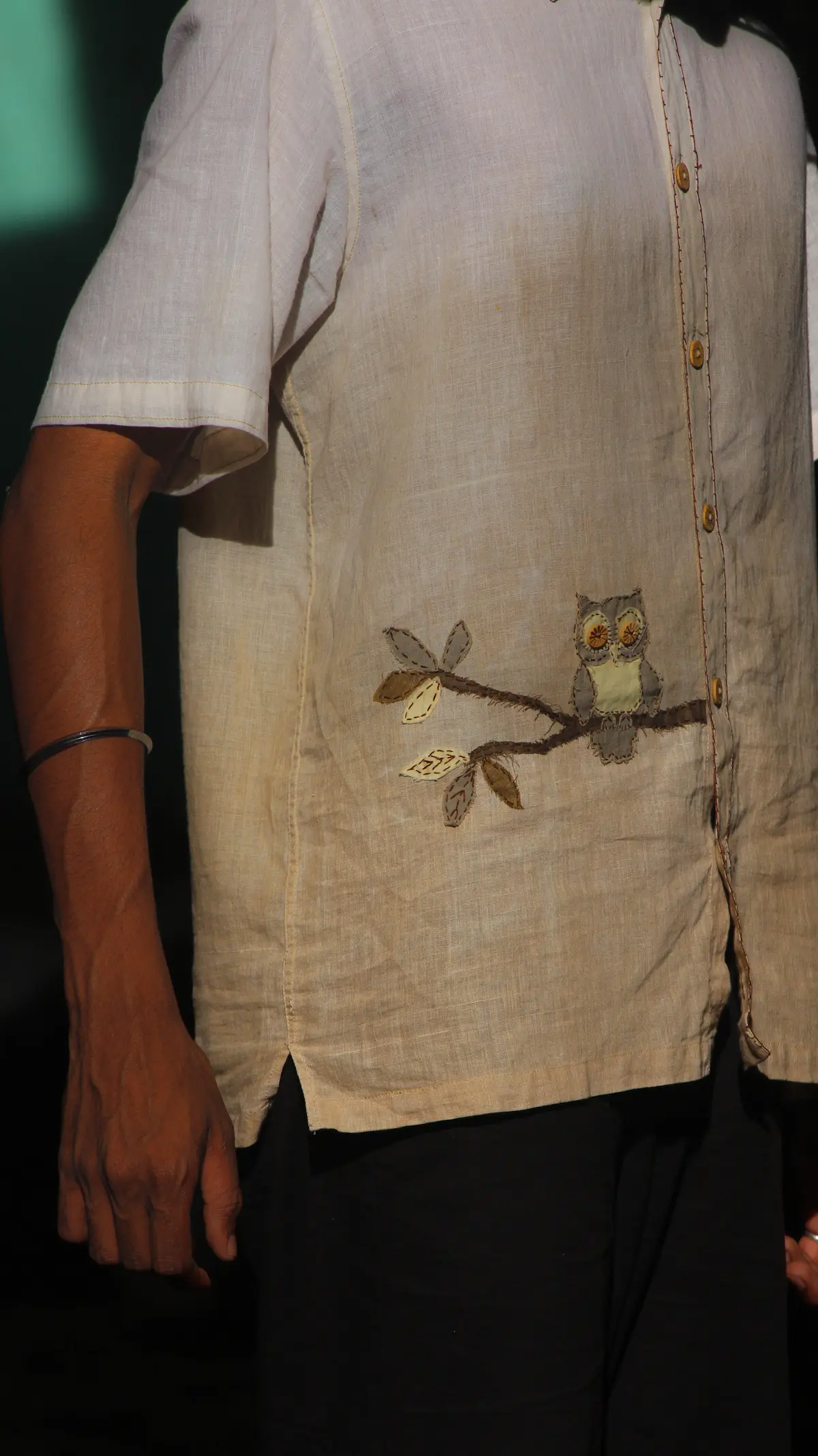 The Mystic Owl shirt celebrates mindful fashion with handwoven khadi and natural coconut husk dye. A unisex classic in earthy brown tones — soft, breathable, and consciously crafted for those who live with purpose